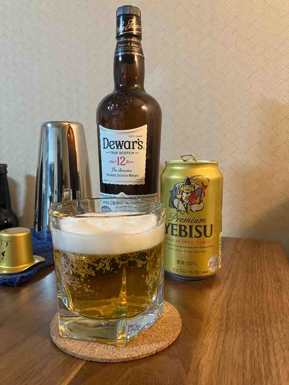 お手元にエビスビールとデュワーズ12年は準備できましたか?ではやりましょう。